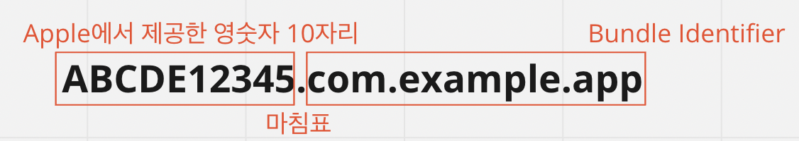 앱을 식별하기 위한 appID 의 value는 Apple에서 제공한 영숫자 10자리를 접두사로 가지고 뒤에 마침표를 찍은 뒤 Bundle Identifier를 붙이게 된다.