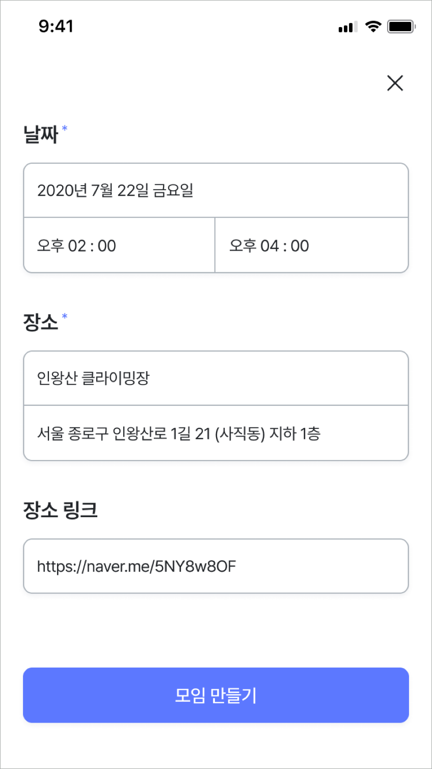 모임 생성 화면
