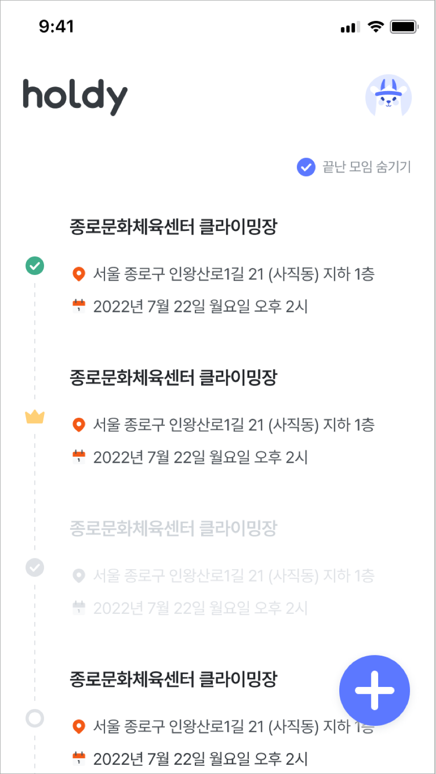 (만약 출석까지 완료한 모임이라면 초록 체크로 표시된다)