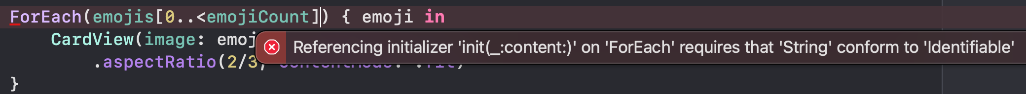 ForEach(emojis[0..<emojiCount], id: \.self) { emoji in