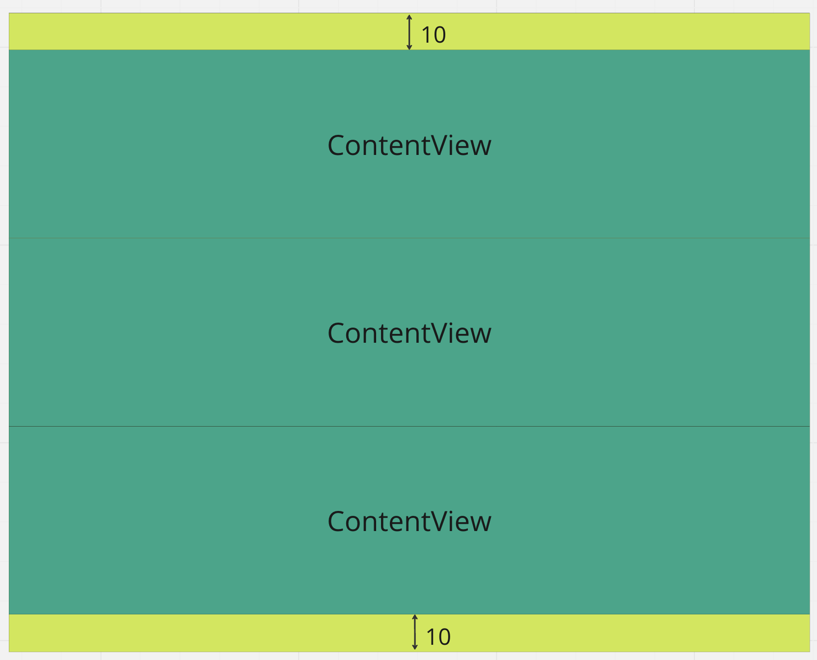 이렇게 하면 섹션 별로 아래 위로 10만큼 인셋이 존재하도록 구현이 가능하다.
