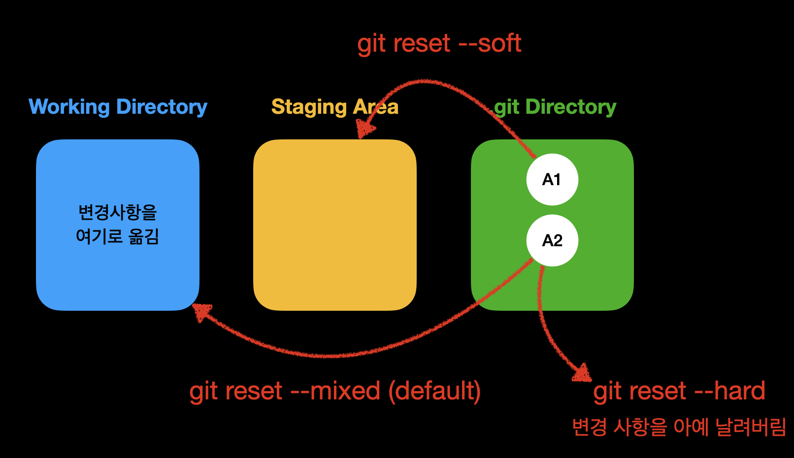 - git reset --soft : 이전 커밋으로 돌아가면서 변경사항은 Staging Area로 옮기게 됨 (git add를 할 필요 X)