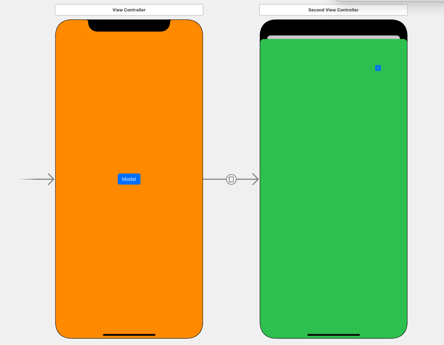 Full Screen 방식으로 두 번째 View를 열게 되면 첫번째 View는 전혀 안보이고 화면이 꽉 차게 modal이 뜨게 된다.