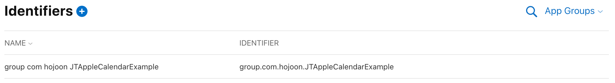 이렇게 하면 Apple Developer 개발자 계정으로 들어가 Identifier 쪽을 확인하면 추가한 App Group Identifier를 확인할 수 있다.
