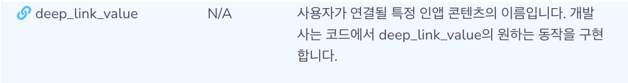 Key값은 deep_link_value와 deep_link_sub1로! Key 값에 대한 설명을 보더라도 해당 값을 넣었을 때 적합하다고 보여졌다.