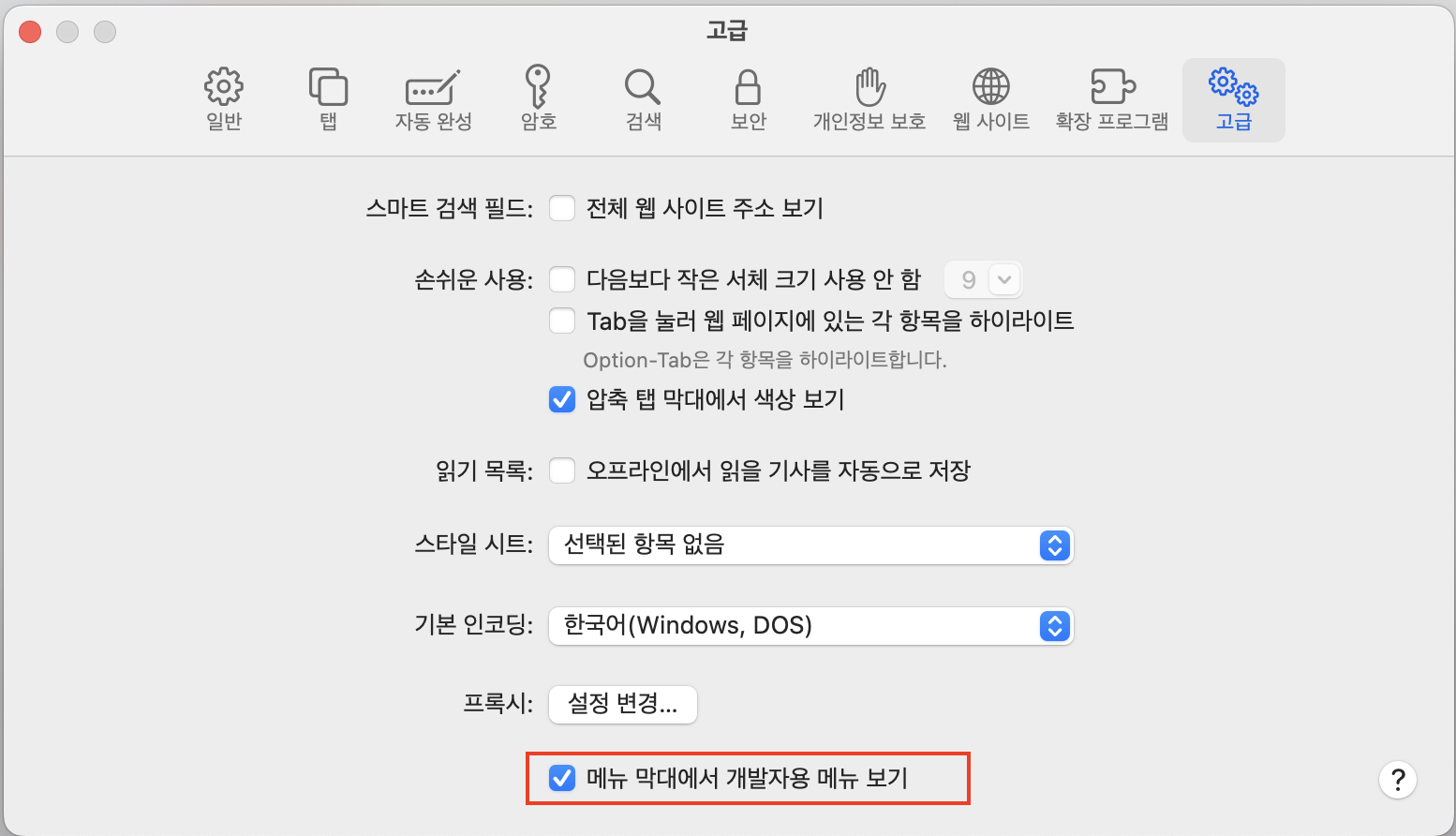 1. 맥의 Safari에서 개발자용 메뉴 활성화하기