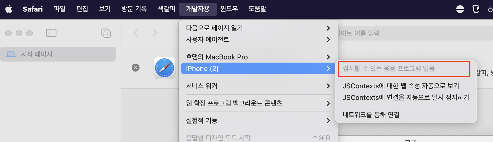 4. 맥 Safari에서 디버깅할 페이지 선택하기