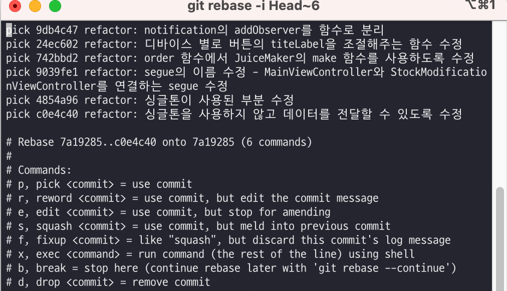 그림에서 보다시피 Head로 있던 곳에서 시작해서 위에서 6번째 코드까지 rebase를 할 수 있는 것을 볼 수 있다.