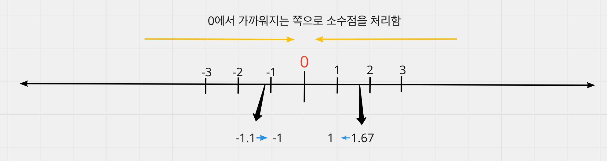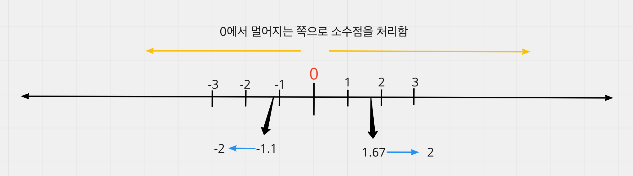 즉, 음수일 때는 커지는 방향으로, 양수일 때는 작아지는 방향으로 소수점을 처리하게 된다.