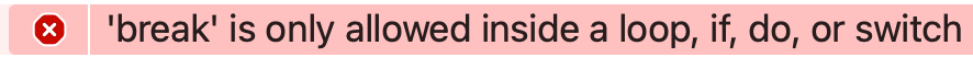 만약 forEach에서 continue나 break를 사용하면 다음과 같은 에러를 만나게 된다.