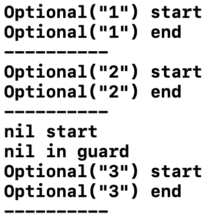 위 코드를 보면 numbers의 element인 number가 nil이게 되면 guard else 문의 코드 블럭에 있는 코드가 실행이 되게 될 것이다.