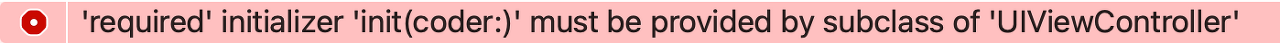init을 따로 지정해주지 않는 경우 부모 클래스의 이니셜라이저를 자동으로 상속하기 때문에 required init(coder:)이 필요가 없다. 하지만 직접 이니셜라이저를 작성하게 되면 부모 클래스의 이니셜라이져를 자동으로 상속하지 않기 때문에 직접 이를 구현하라는 오류 문구가 나오는 것이다.