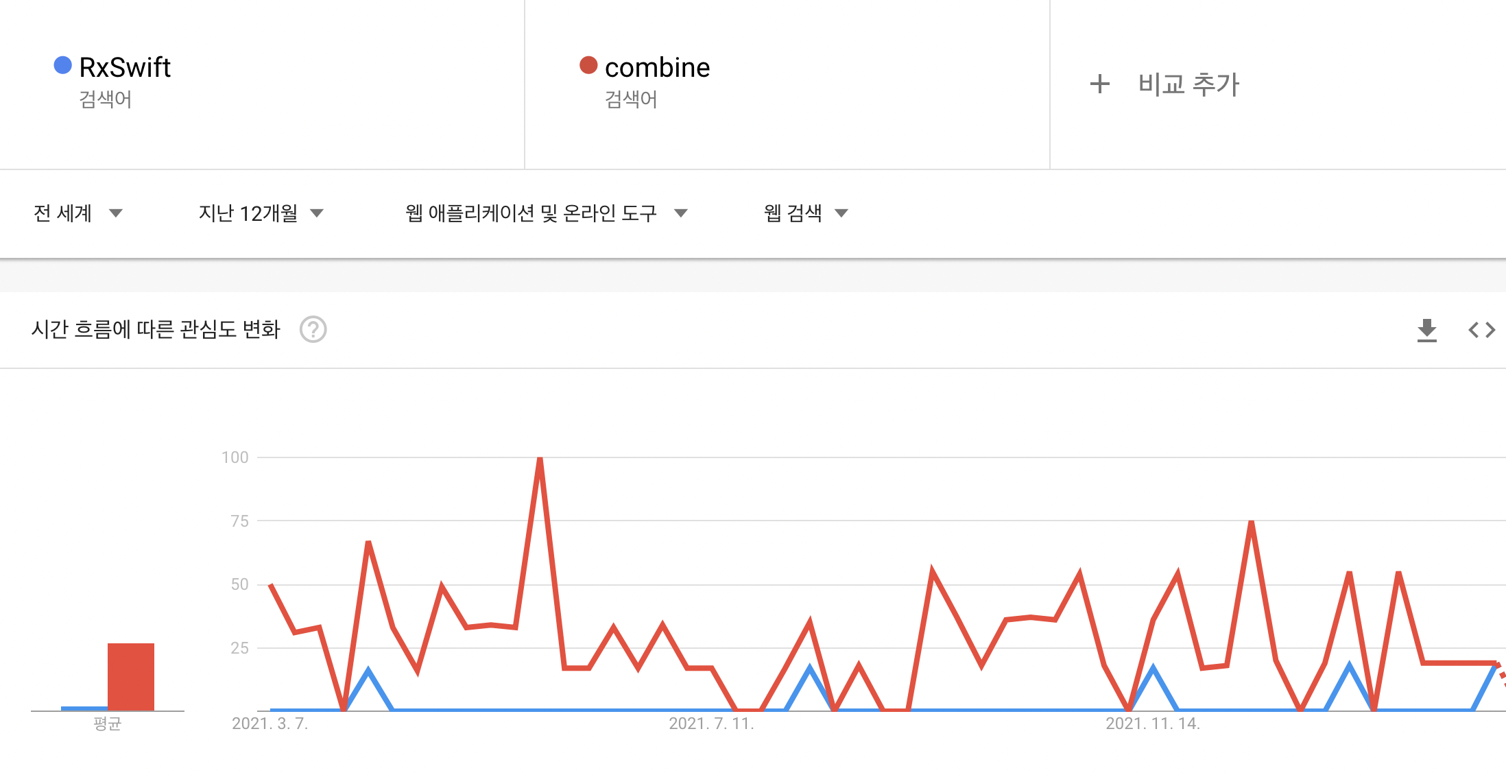 이렇게 비슷한 기술을 비교하며 어떤 기술이 많이 검색되고 있는지도 확인할 수 있다.