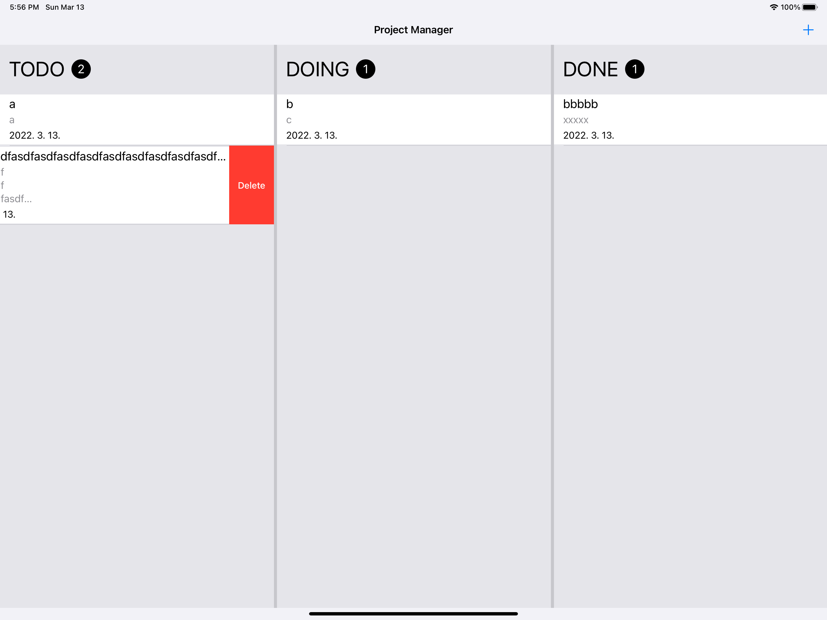 스와이프를 통해 해당 셀을 삭제하거나 공유할 수 있도록 하는 것이다.