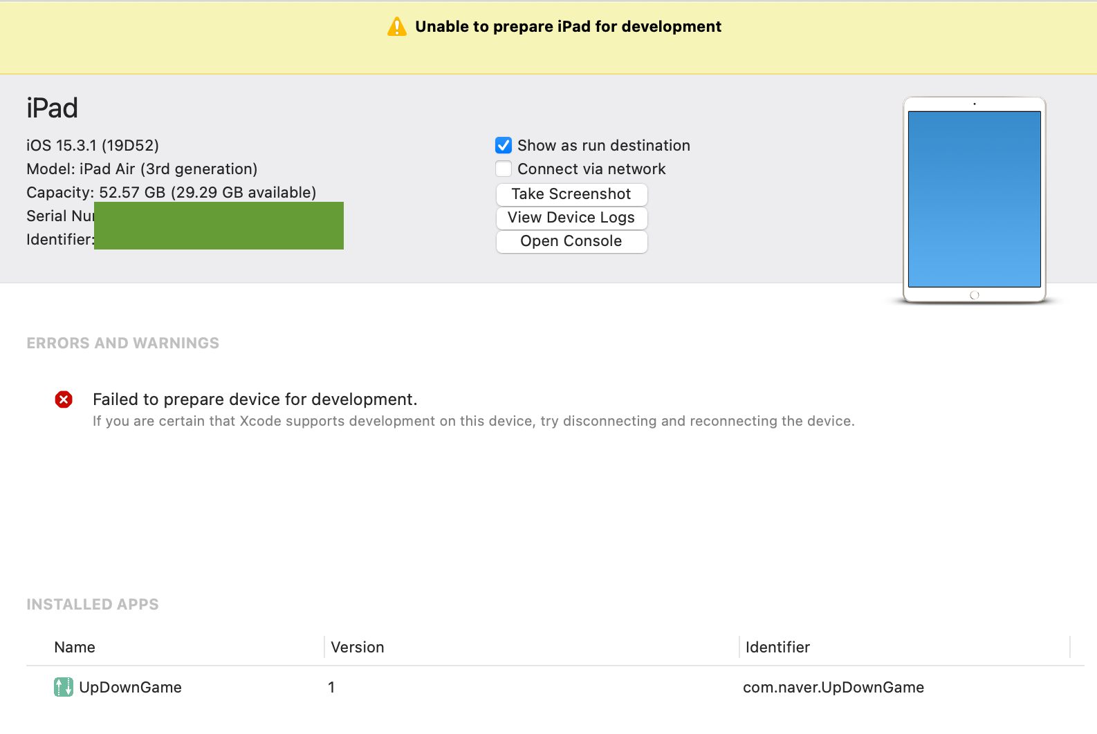 Unable to prepare iPad for development !!